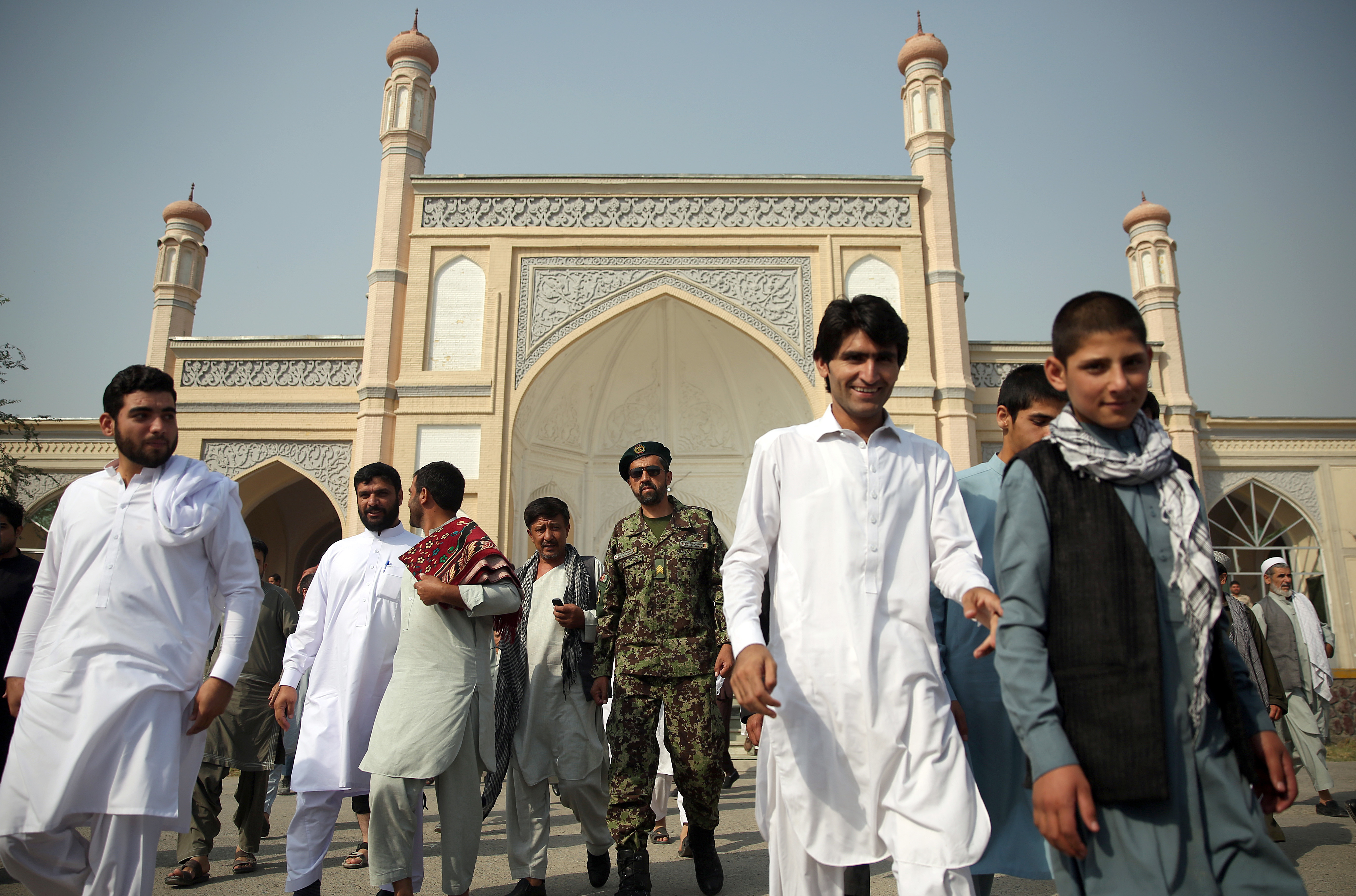 Afghans leave after offering Eid al-Adha prayers outside Eid Gah mosque in Kabul, Afghanistan, Monday, Sept. 12, 2016. Muslims around the world will celebrate Eid al-Adha, the Festival of Sacrifice, to mark the end of the hajj pilgrimage by slaughtering sheep, goats, cows and camels to commemorate Prophet Abraham’s readiness to sacrifice his son Ismail on God’s command. (AP Photo/Massoud Hossaini)