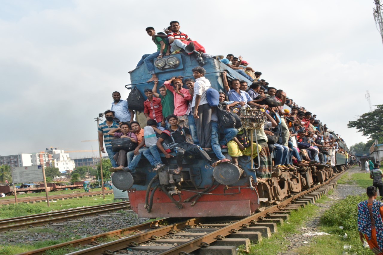 (160912) — DHAKA, Sept. 12, 2016 (Xinhua) — A train carrying homebound passengers leaves Dhaka, Bangladesh, Sept. 12, 2016. Millions of Dhaka dwellers flocked to village homes to celebrate Eid al-Adha. (Xinhua/Rizwan Karim)