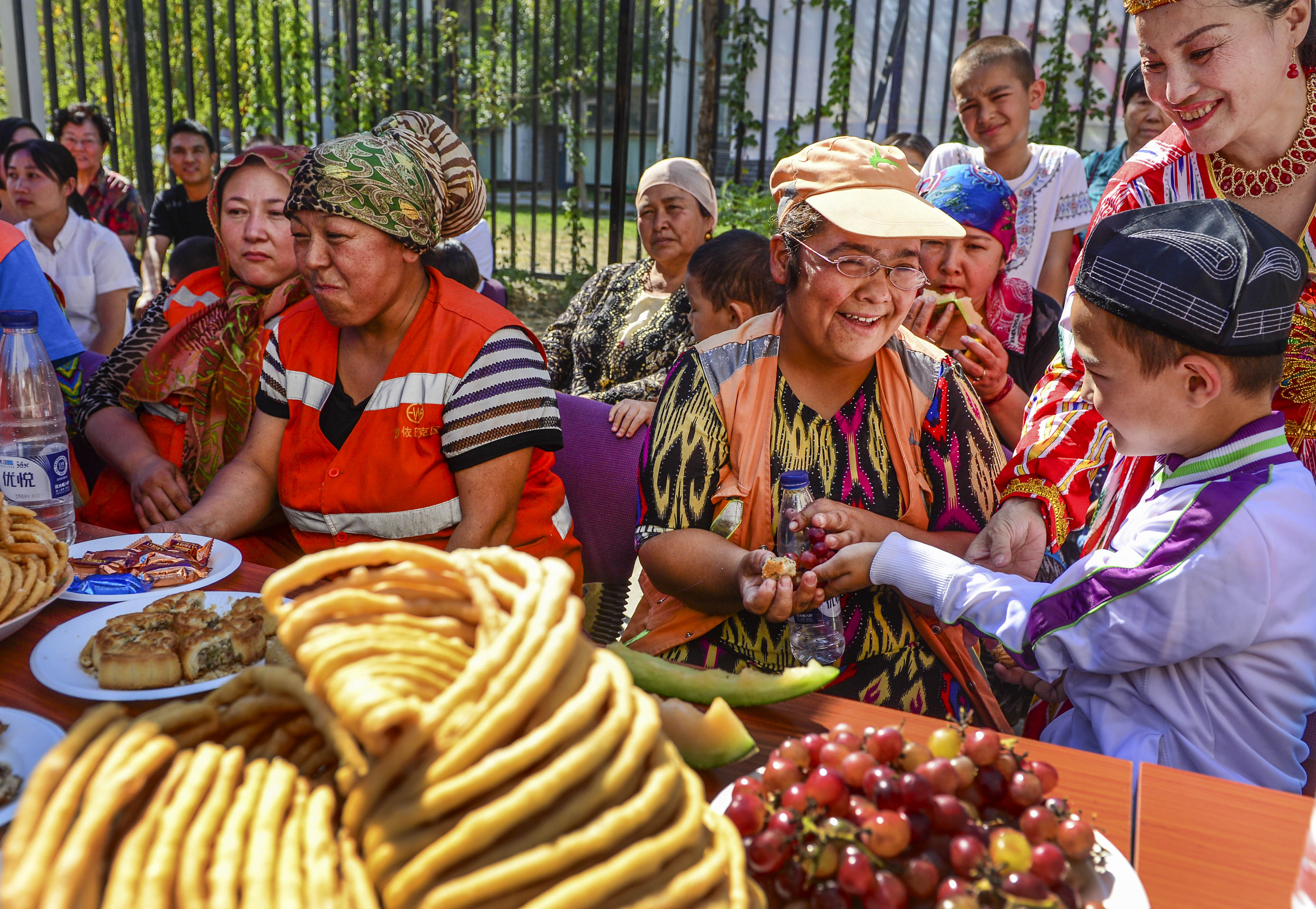 (160912) — URUMQI, Sept. 12, 2016 (Xinhua) — Residents of a community enjoy food to celebrate the Corban Festival in Urumqi, capital of northwest China’s Xinjiang Uygur Autonomous Region, Sept. 12, 2016. On Monday, Muslims in China welcomed Corban Festival, also known as Eid al-Adha or the feast of the sacrifice. (Xinhua/Wang Fei) (zhs)