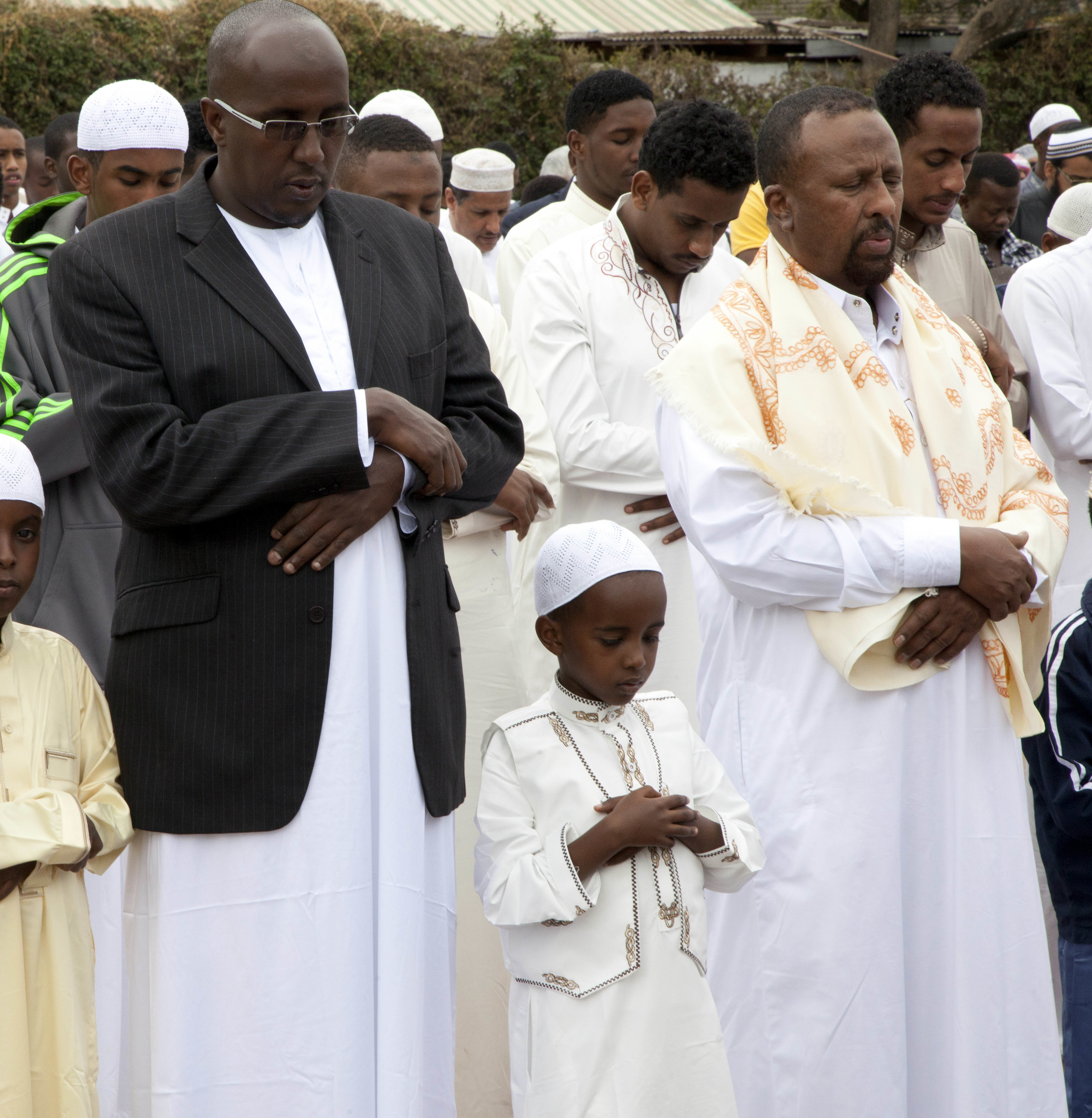 A child joins Kenyan Muslims in prayers to celebrate Eid al-Adha, or Feast of Sacrifice, that commemorates the Prophet Ibrahim’s faith, in Nairobi, Kenya, Monday, Sept. 12, 2016. Eid al-Adha marks the end of hajj. (AP Photo/Sayyid Abdul Azim)