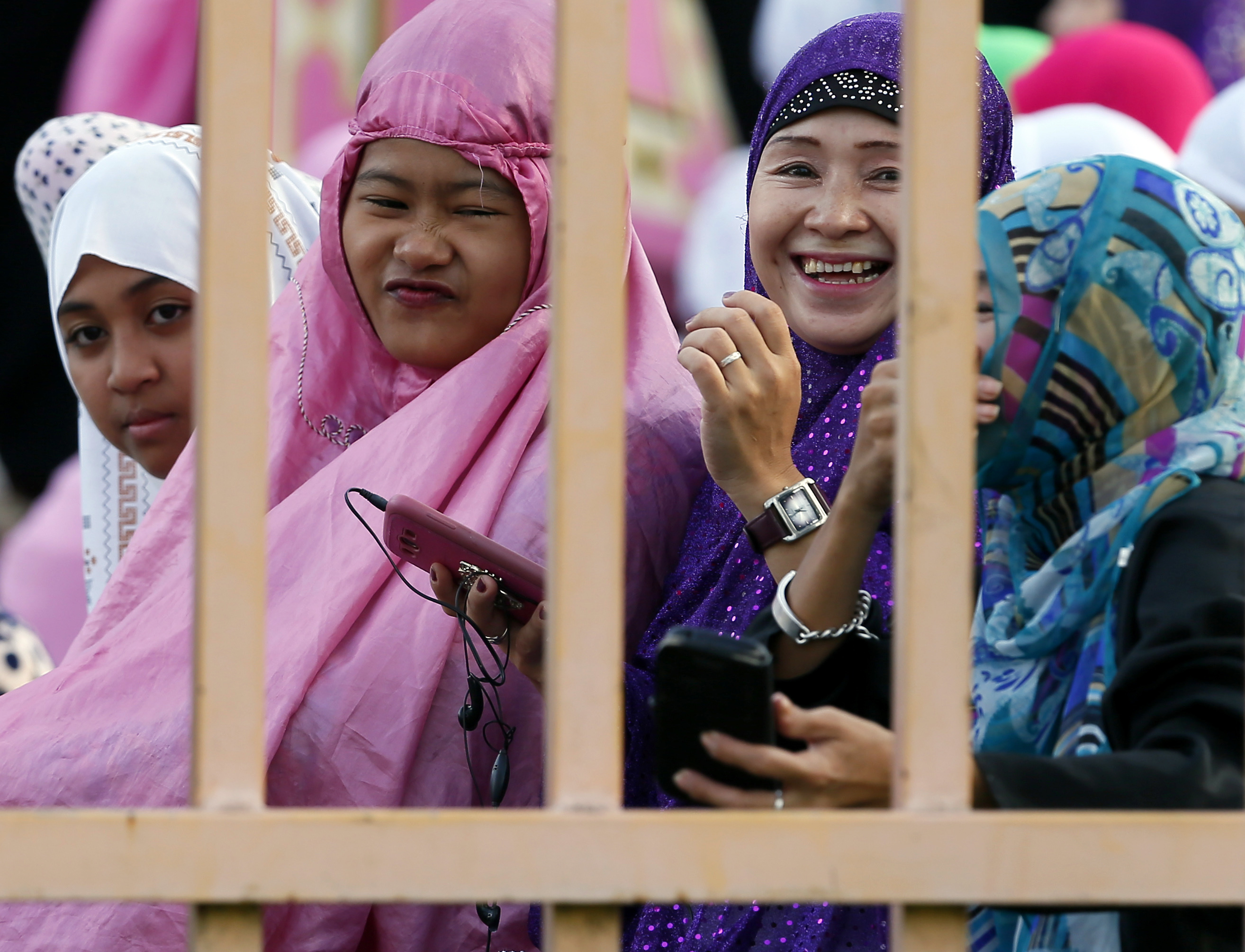 Filipino Muslims gather at the Blue Mosque to mark Eid al-Adha (Feast of the Sacrifice) Monday, Sept. 12, 2016 in suburban Taguig city, east of Manila, Philippines. Muslims around the world celebrate Eid al-Adha by sacrificing animals to commemorate the prophet Ibrahim’s faith in being willing to sacrifice his son. (AP Photo/Bullit Marquez)