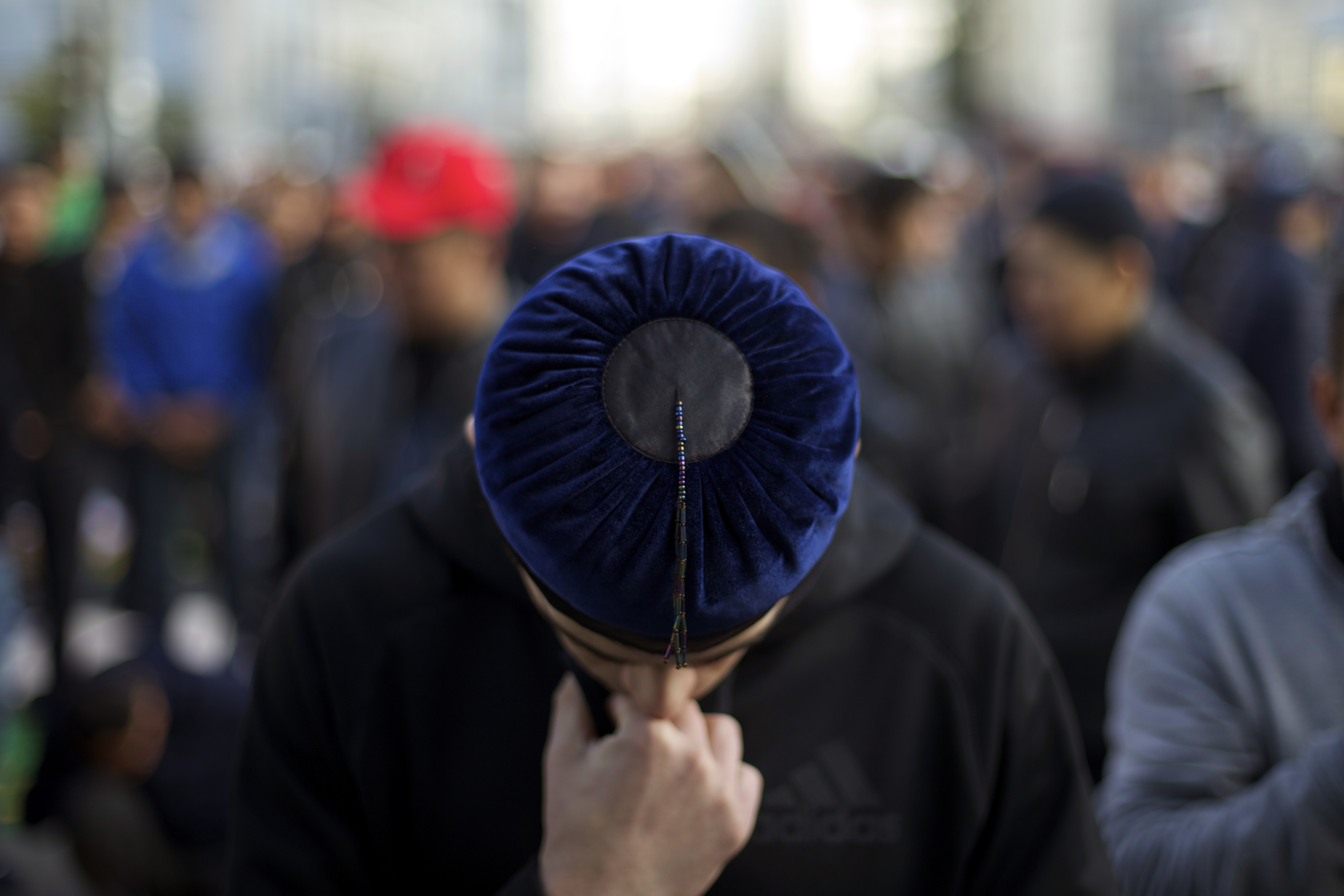 A Muslim prays outside a mosque during celebrations of Eid al-Adha, a feast celebrated by Muslims worldwide, which Muslims in Russia call Kurban-Bairamin Moscow, Russia, on Monday, Sept. 12, 2016. (AP Photo/Ivan Sekretarev)