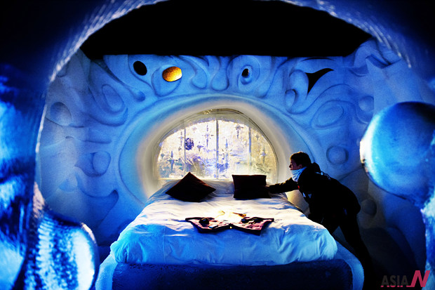 The recently new-opened hotel is the first ice hotel in the Netherlands which has three rooms in total, and the inside temperature keeps minus four degree Celsius. It will receive guests only for two months, The cost is per person per night 99.50 Euro. <Photograph: Xinhua>
