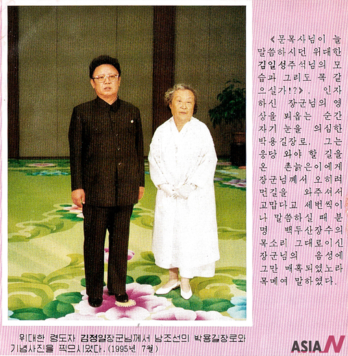 The caption of the photo is as follows,  “How he(Kim Jong-il) closely resembles the North Korean founder Kim Il-sung!? Park cannot believe her own eyes after she met North Korean leader Kim Jong-il···”