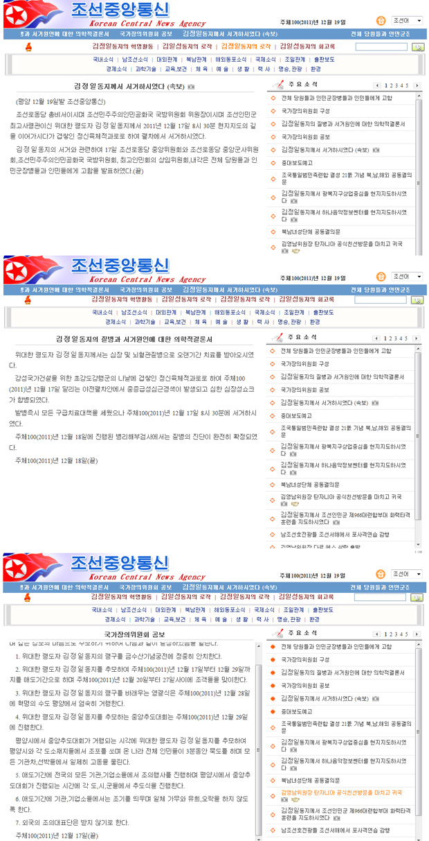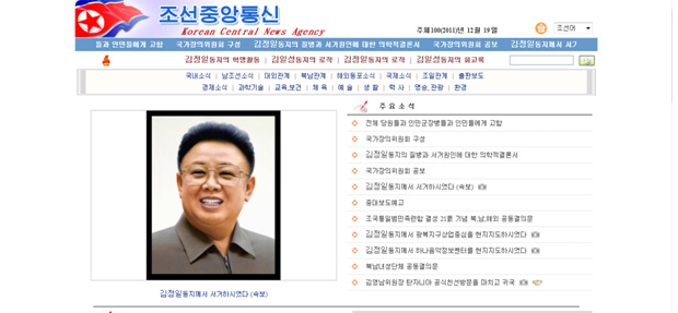 Korean Central Television covered the death of Kim Jong-il in detail with its website www.kcna.kp. This website is not available in South Korea.