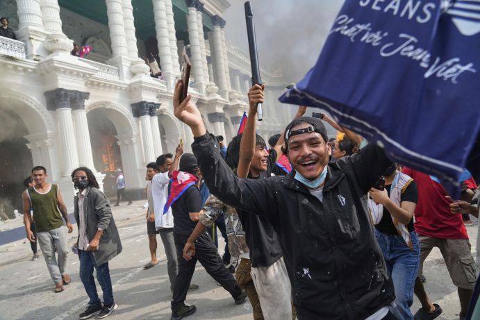 Young people protesting in front of the Nepali parliament building, demanding the resignation of the corrupt government. (Photo = AP/Yonhap News)