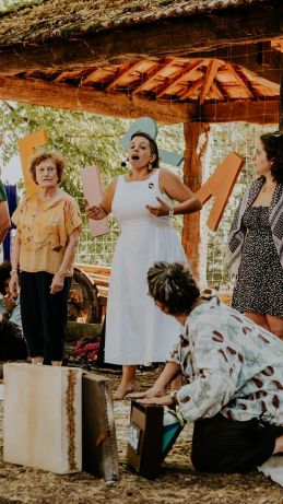 Over the past decade, she has coordinated numerous community projects: working with children, seniors, and patients of the Portuguese Cerebral Palsy Association, and leading initiatives such as enRedArte, which engaged 5,000 people in rural Portugal through residencies, workshops, and cultural programs. She has also pioneered educational and pedagogical projects, founded the cultural cooperative Frenesim, and created shows like DeRaiz and O Fio—all shaped by the conviction that art is a bridge to inclusion, dignity, and mutual respect.