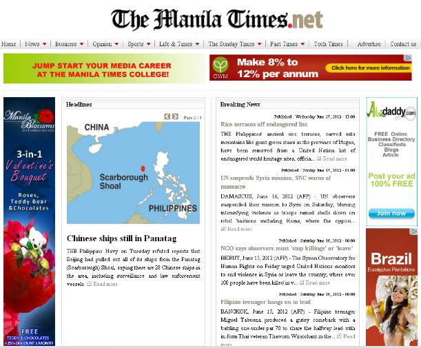 Top news in <Manila Times> :  Chinese ships still in Panatag