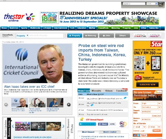 Major news in <The Star > : Govt probes imports of steel wire rods from Taiwan, China, Indonesia, Korea and Turkey