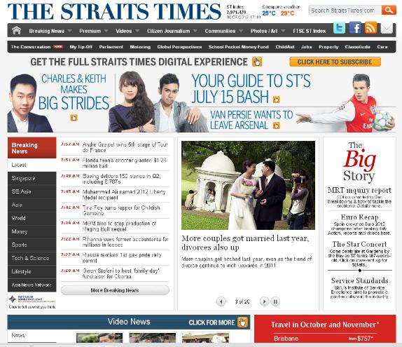 Major news in < Straits Times> : More couples got married last year, divorces also up
