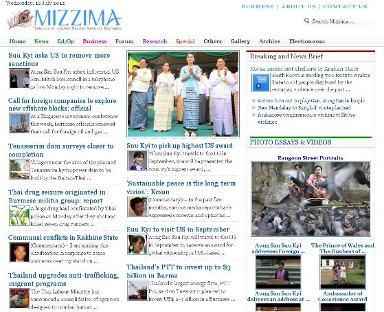 Major news in <Mizzima> : Korea sends tent shelters to Arakan State