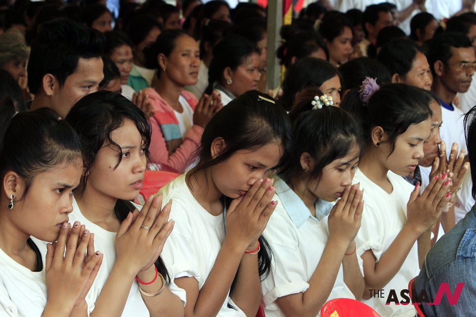 Cambodian garment workers offer prayers during a rally celebrating International Human Rights Day, in Phnom Penh, Cambodia, Monday, Dec. 10, 2012. About 1,000 participants consisting of non-governmental organization activists, garment workers, and international diplomats marched on the street in Phnom Penh, calling for the protection of human rights. <AP Photo/Heng Sinith>
