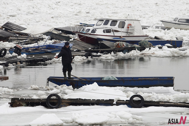 Danube River’s Ices Damage Serbians’ Boats