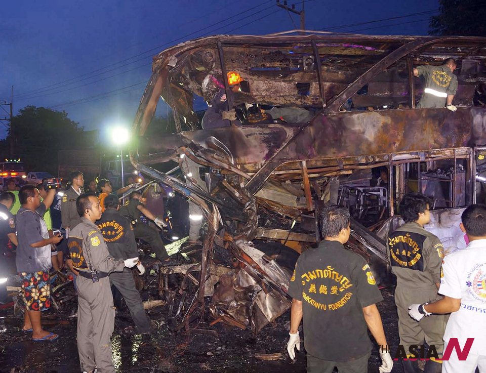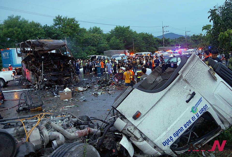 The overnight bus had been heading for Bangkok on the Mitraphab highway in Kaeng Khoi district in the central province of Saraburi. It had departed from Roi Et province in Thailand’s northeast Monday night.
