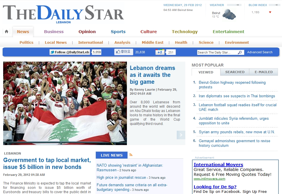 Lebanon Arabia on 29 February 2012 <The Daily Star>: Lebanon dreams as it awaits the big game