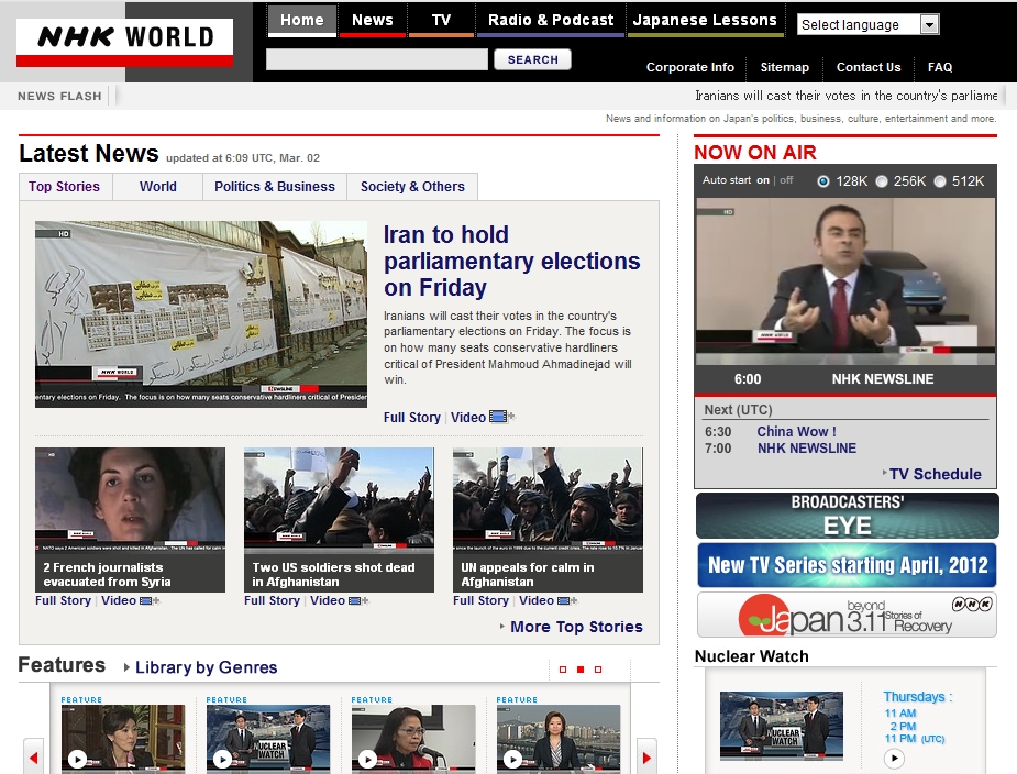 Japan on 2 March 2012 <NHK>: Iran to hold parliamentary elections on Friday news@theasian.asia