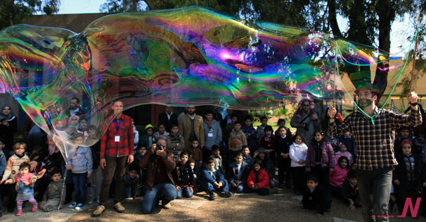 Gaza Children Enjoy Bubble Show