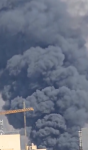 With the backdrop of giant structures, a kid plays in a park in Mullae, Seoul.