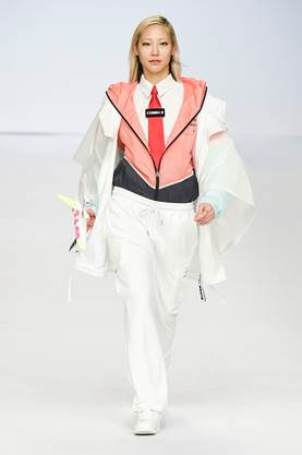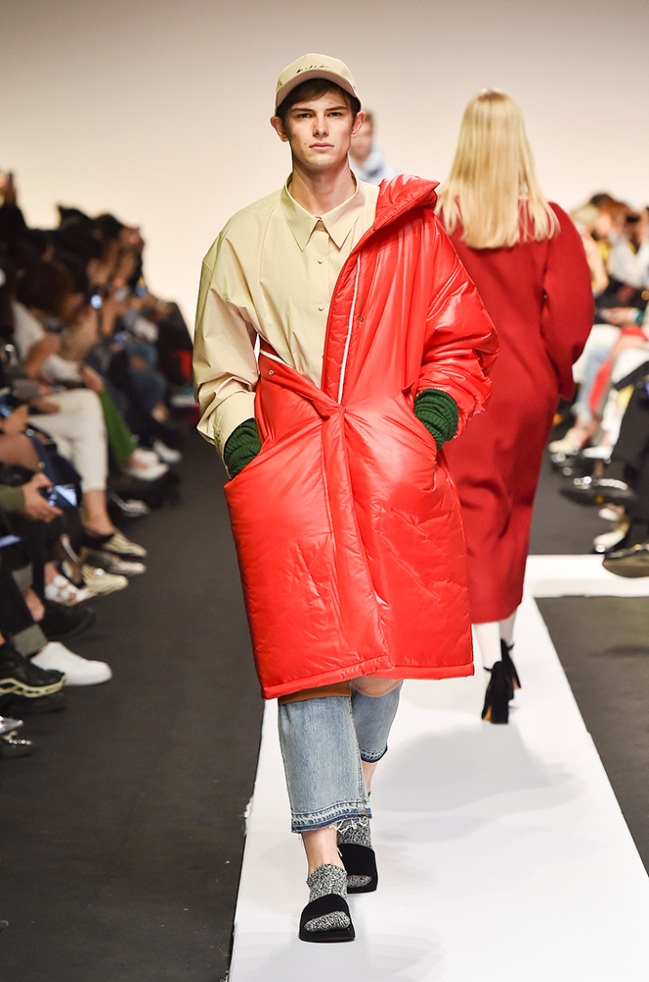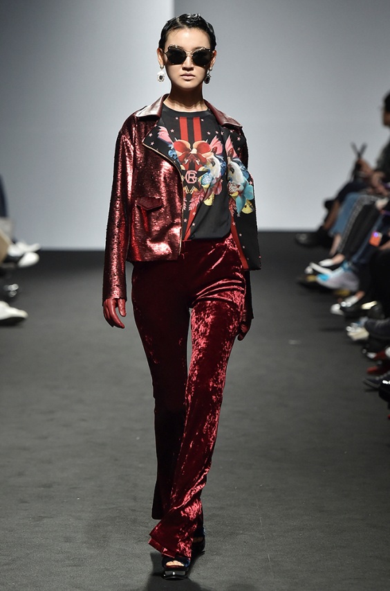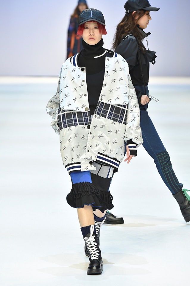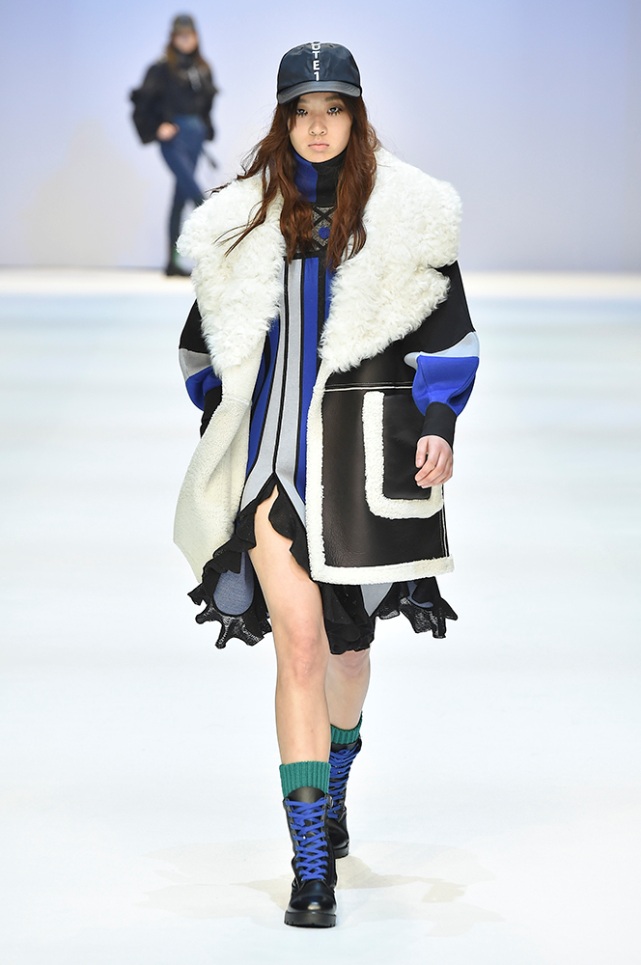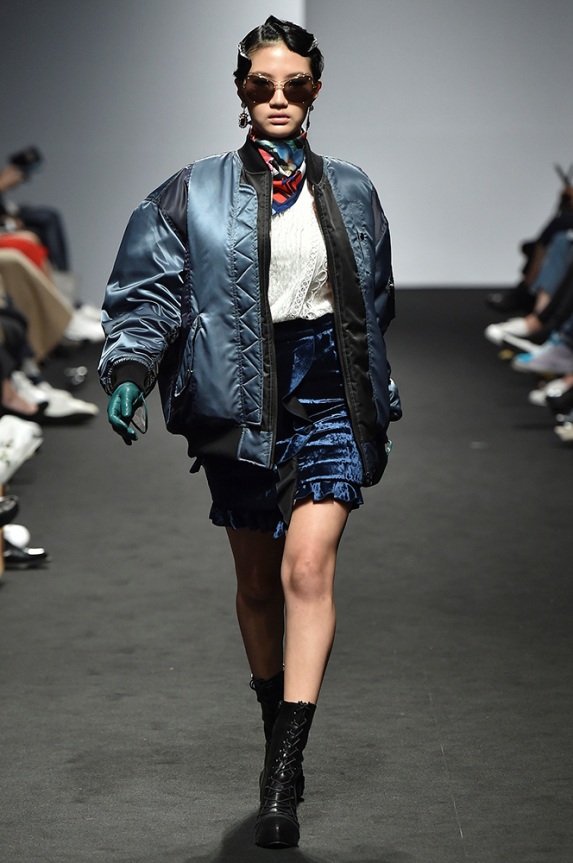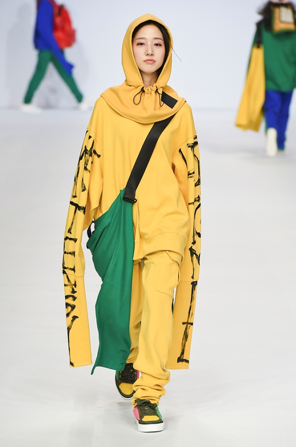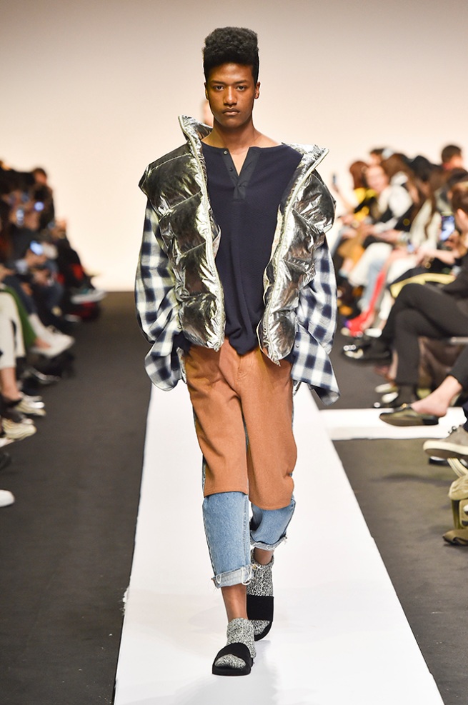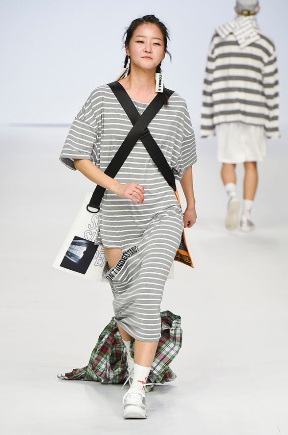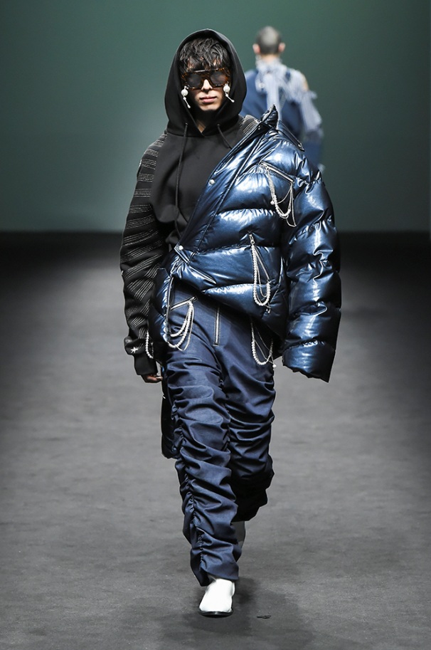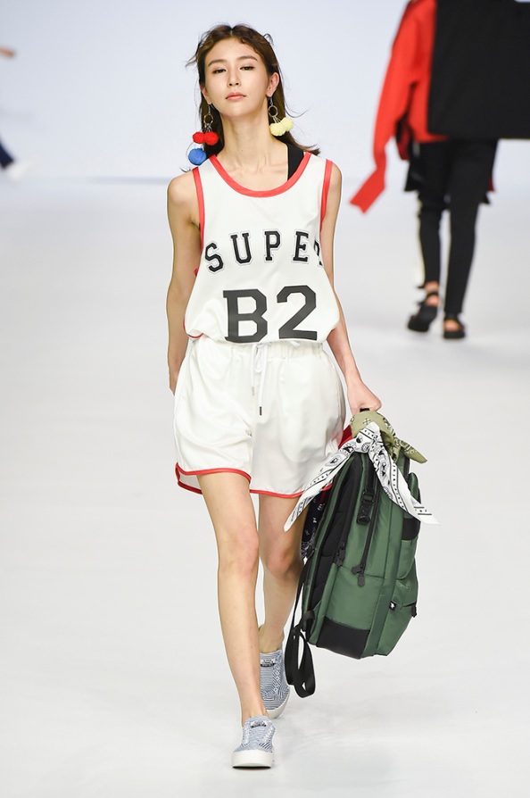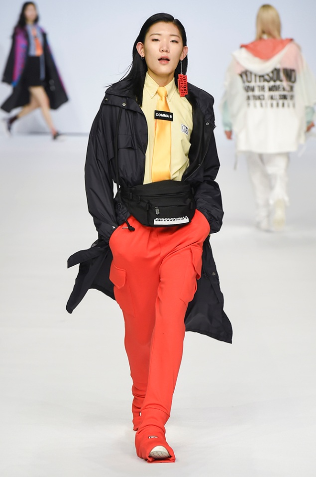 Supercomma B, brought an exciting performance in their 2017 F/W winter presentation. The show included big names in the Kpop industry adding “fun” and a youthful tough to the fashion walkways. There were some popular trends that appeared on the show like the oversized and fun-colored puffer jackets, puffer pants and long arm sleeves. There was no lack of color as the audience saw vests, track pants and even ties in bright green, blues and reds which gave the collection a sporty essence and a retro and pop feel. Models added excitement to the runways as shows were also being streamed live on Facebook—which also allowed those who were unable to make it to SFW feel included.