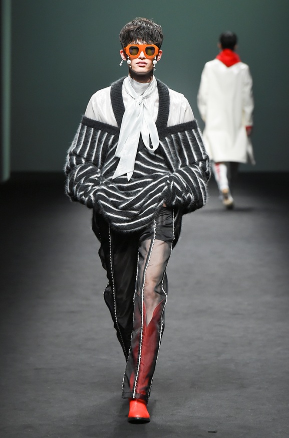 Pushbutton came through spectacularly for Hera Seoul fashion week 2017 with its eccentric streetwear look. Designer Seung Gun Park displayed his collection of playful street-inspired looks with strong-shouldered boxy coats, the half and half jacket looks, the loose-fitting attires as well as the colors range being from red to blue to green and khaki. I loved the collection’s colorful and effortless looks fit for everyday wear.